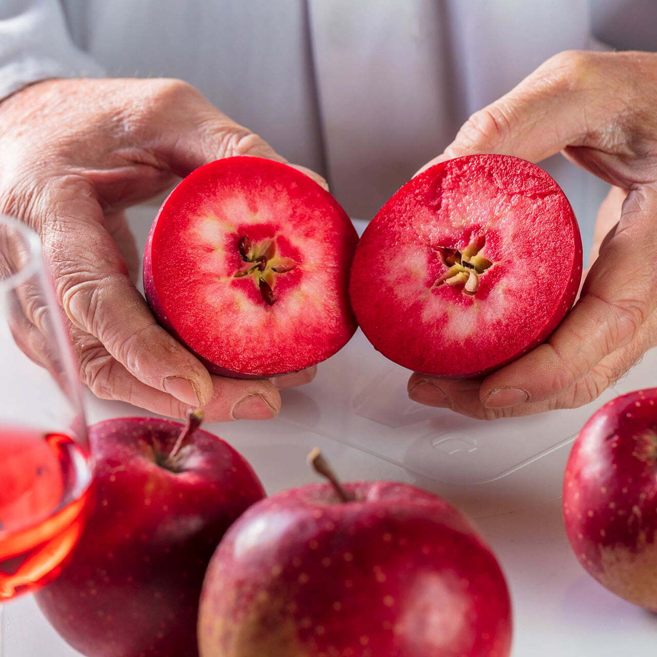 美しいロゼ色の秘密はりんごの天然色素。欧州連合で登録されているしっかりとした酸味と甘み、芳醇な香りを持つ現代的な赤身の品種を使用。