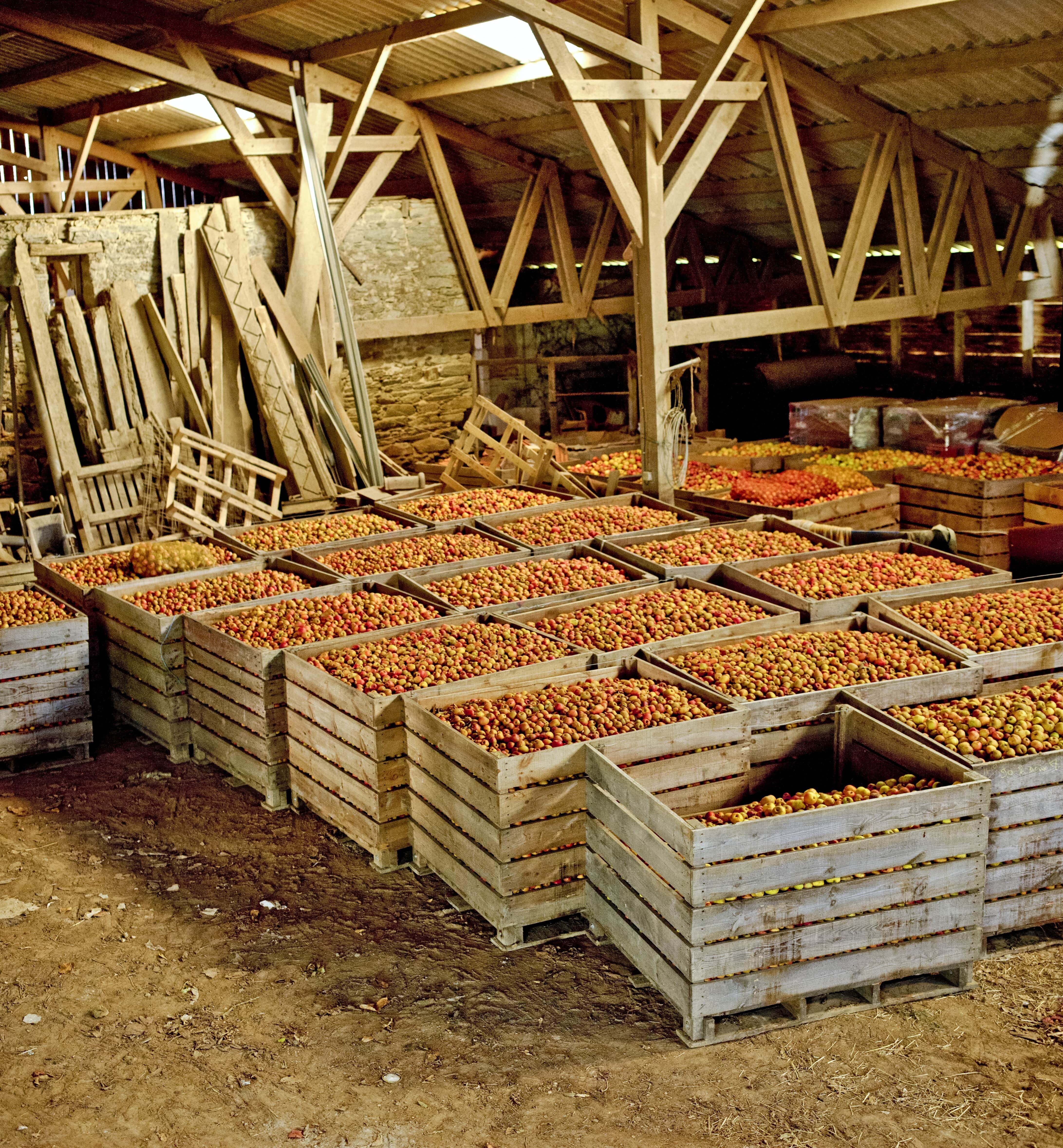 除草剤の使用や、望ましくない細菌が豊富な土壌と果実が接触することを避けるため、芝生化された果樹園で有機りんごを栽培しています。りんごは一つ一つ手で収穫され、20日から2.5ヶ月間、乾燥した場所で熟成させ、糖分を凝縮させます(パセリヤージュ技法)。
