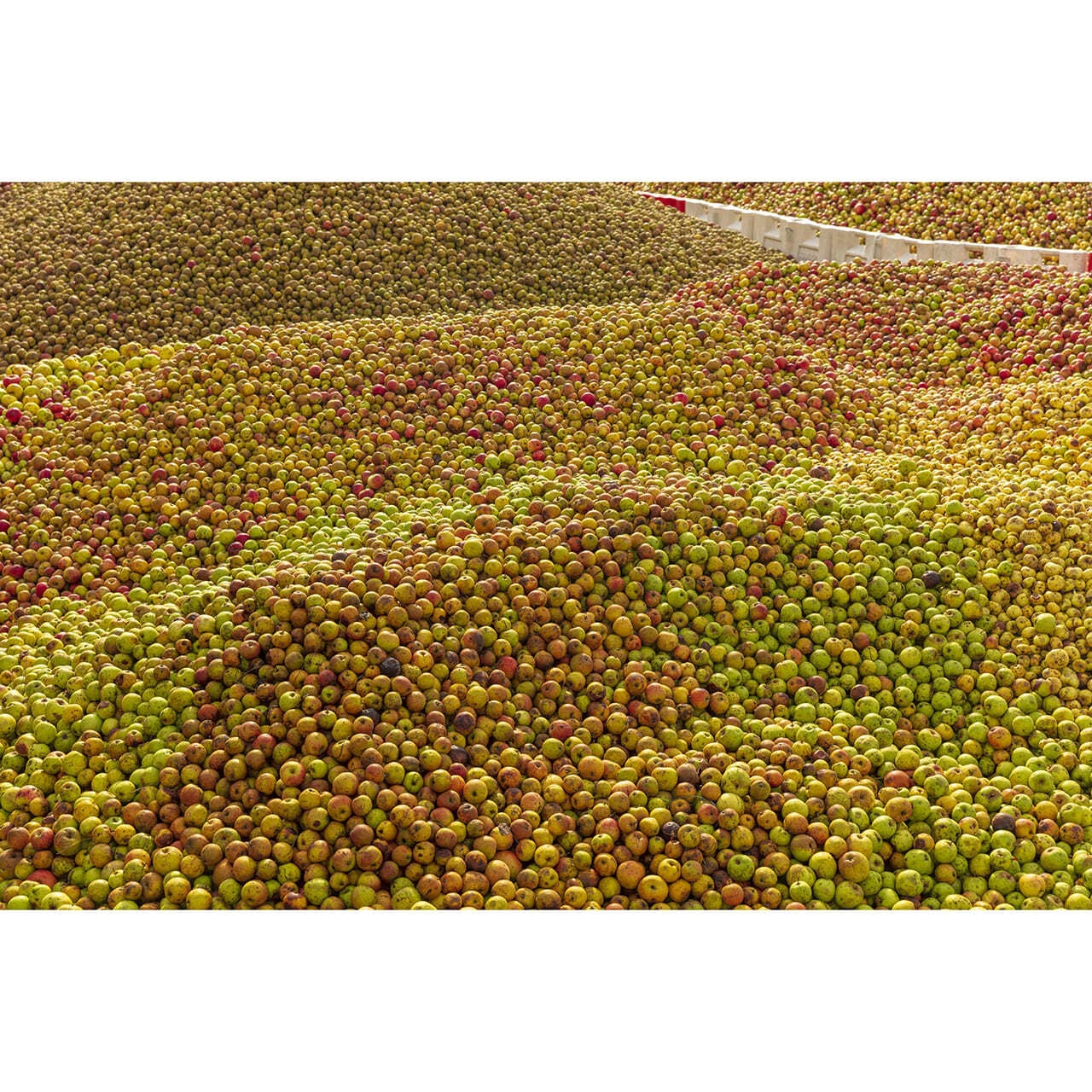 今日では400名の契約農家が厳選されたシードル用りんごの栽培に従事し、年間平均25,000トンのりんごを供給している。